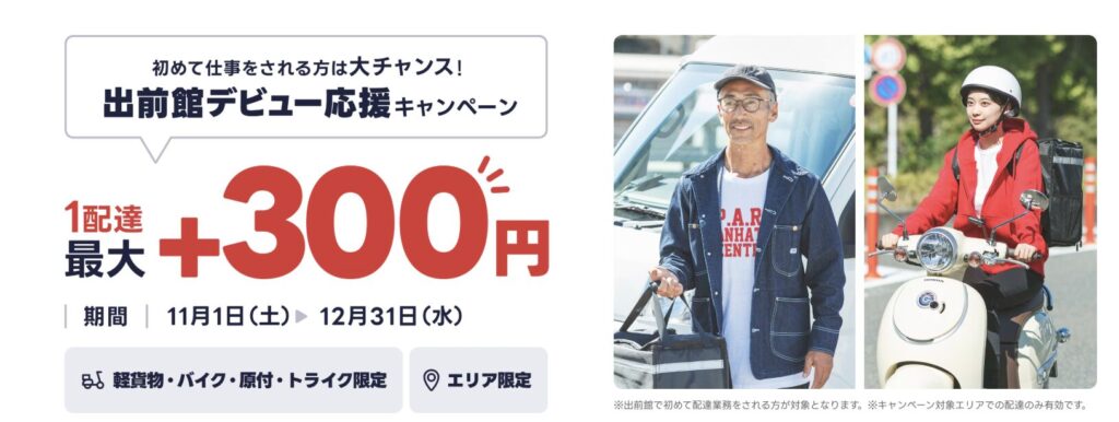 出前館 新規配達員報酬アップキャンペーン ※2025/12/31まで!