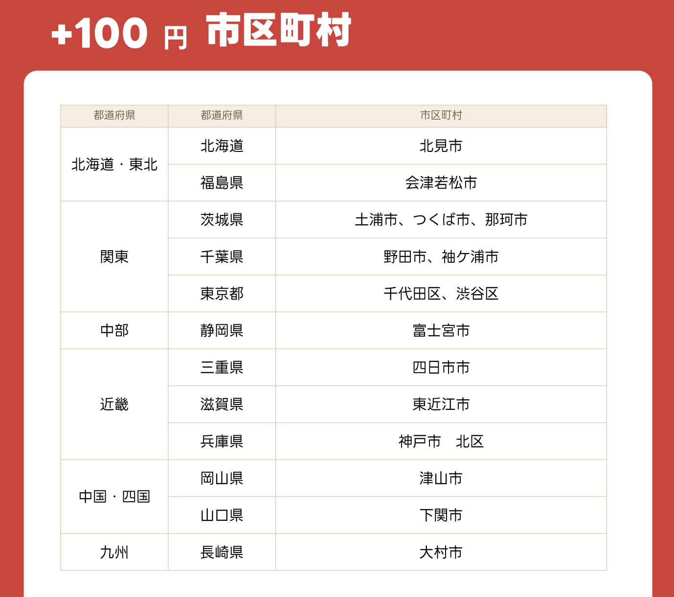 • 【東京都】東京23区・調布市・武蔵野市・八王子市・三鷹市・国分寺市・国立市・多摩市・小平市・小金井市・府中市・日野市・昭島市・東久留米市・東大和市・東村山市・武蔵村山市・清瀬市・狛江市・町田市・稲城市・立川市・西東京市
