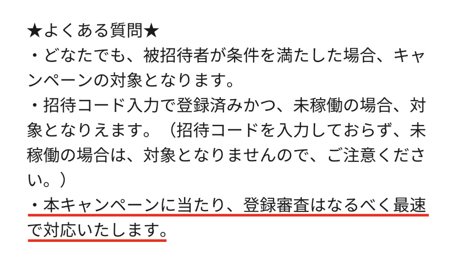 また、menuは審査の期間が長いのですが、今回のキャンペーンにあたり審査を最速で対応するとのこと。実際にすでに達成された方もいるので、「審査に時間がかかって達成できない…」という心配はなさそうです。