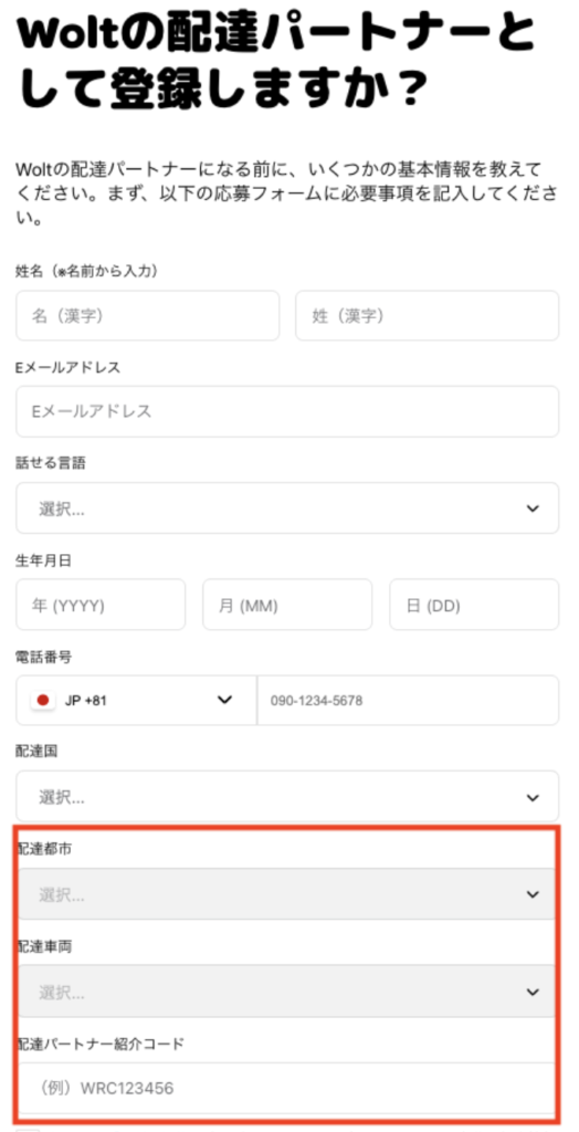 上記対象エリアで紹介コード「WRC5584069」を入力し、Wolt配達パートナーに登録すると最大15,000円のキャッシュバックが入ります。